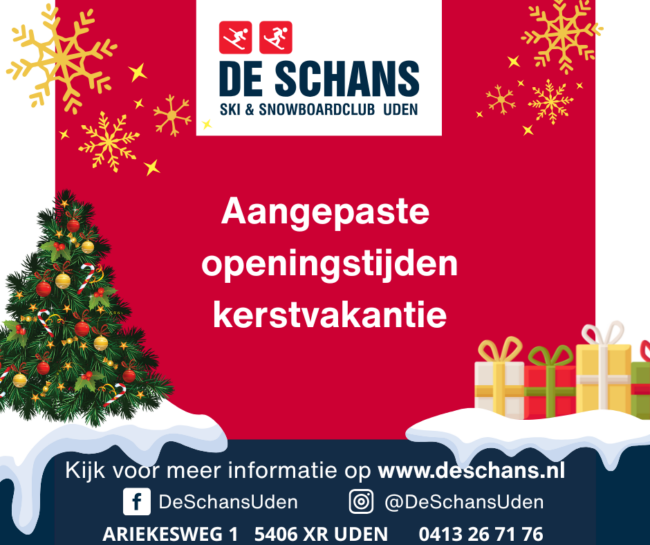Tijdens de kerstvakantie zijn er aangepaste openingstijden bij de Schans: Wij wensen iedereen hele fijne feestdagen!