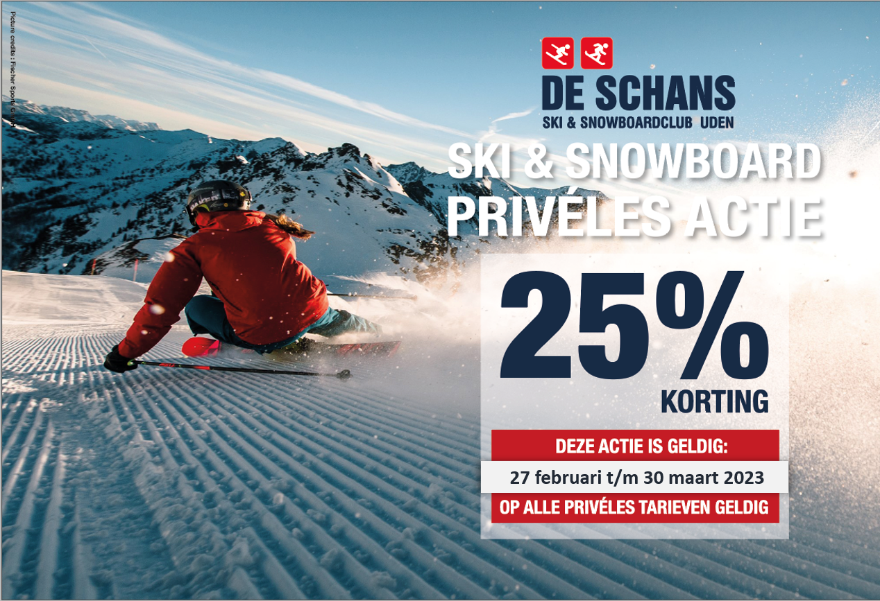 Ontvang 25% korting op alle privéles tarieven. Deze actie is geldig van 27 februari t/m 31 maart. Ben er snel bij want VOL=VOL! Inschrijven