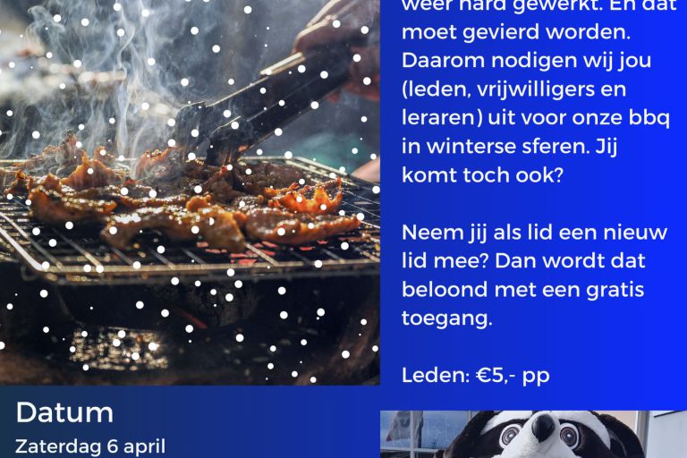 Wij nodigen onze leden, vrijwilligers en leraren uit voor onze bbq in winterse sferen. Entree is € 5,00 voor leden.…